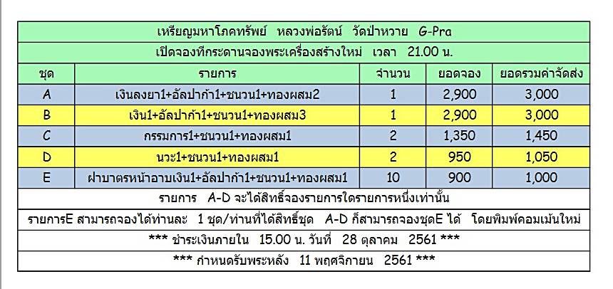 แจ้งรายละเอียดในการจองที่เวปจีกันนะครับ สำหรับเหรียญมหาโภคทรัพย์ หลวงพ่อรัตน์ วัดป่าหวาย