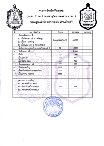 รายการจัดสร้าง ตามใบรายการนี้เลยนะครับ สนใจรายการไหนสอบถามเข้ามาได้เลยครับ |
