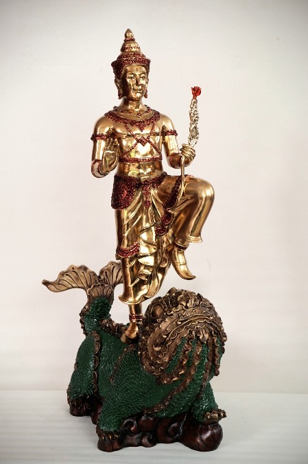 ขนาด :สูงรวม 70 ซ.ม. ตัวมอมกว้าง 45 ซ.ม. น้ำหนักประมาณ17 กก.ถอดแยกได้ 3 ส่วน คือ องค์เทพ ตัวมอม และดอกไม้สวรรค์