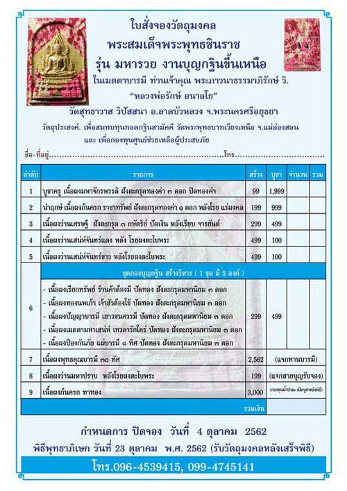 #ใบจองรายการจัดสร้างตามนี้