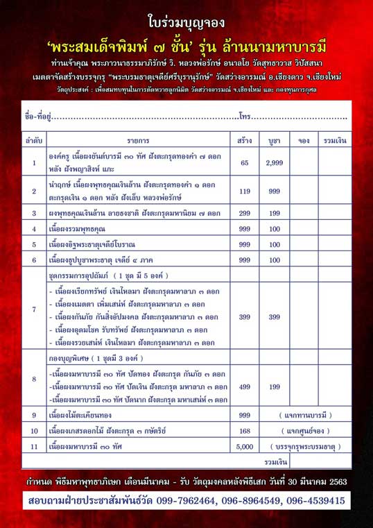 พระสมเด็จพิมพ์ ๗ ชั้น รุ่น ล้านนามหาบารมี