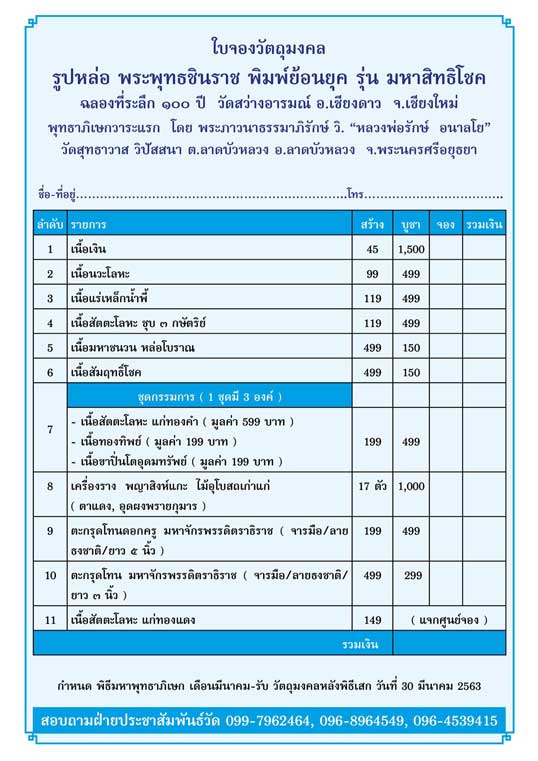 เปิดจองพระพุทธชินราชหล่อโบราณ