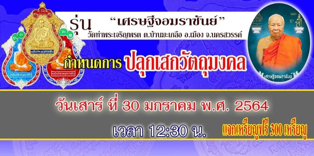 ขอแจ้งประชาสัมพันธ์ อย่างเป็นทางการครับ🛎 🙏 มาร่วมกัน แผ่บารมีหลวงพ่อเจ้าคุณสุนทร กันครับ ✍️ เป็นพระมหาเถระ ที่มีความเมตตา มหานิยม ✍️ วัตถุมงคลที่ท่านปลุกเสก แคล้วคลาด ปลอดภัย ✍️ รุ่น เศรษฐีจอมราชันย์. ณ วัดท่าพระเจริญพรต จ.นครสวรรค์ วันเสาร์ที่ 30 มกราคม 2564 นี้