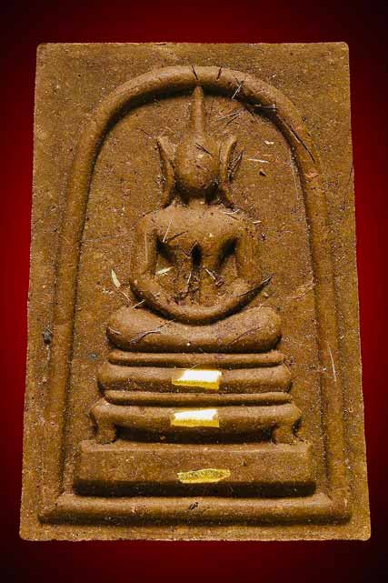 2.เนื้อผงใบลานเก่า ฝังตะกรุดเงิน ๓ ดอก