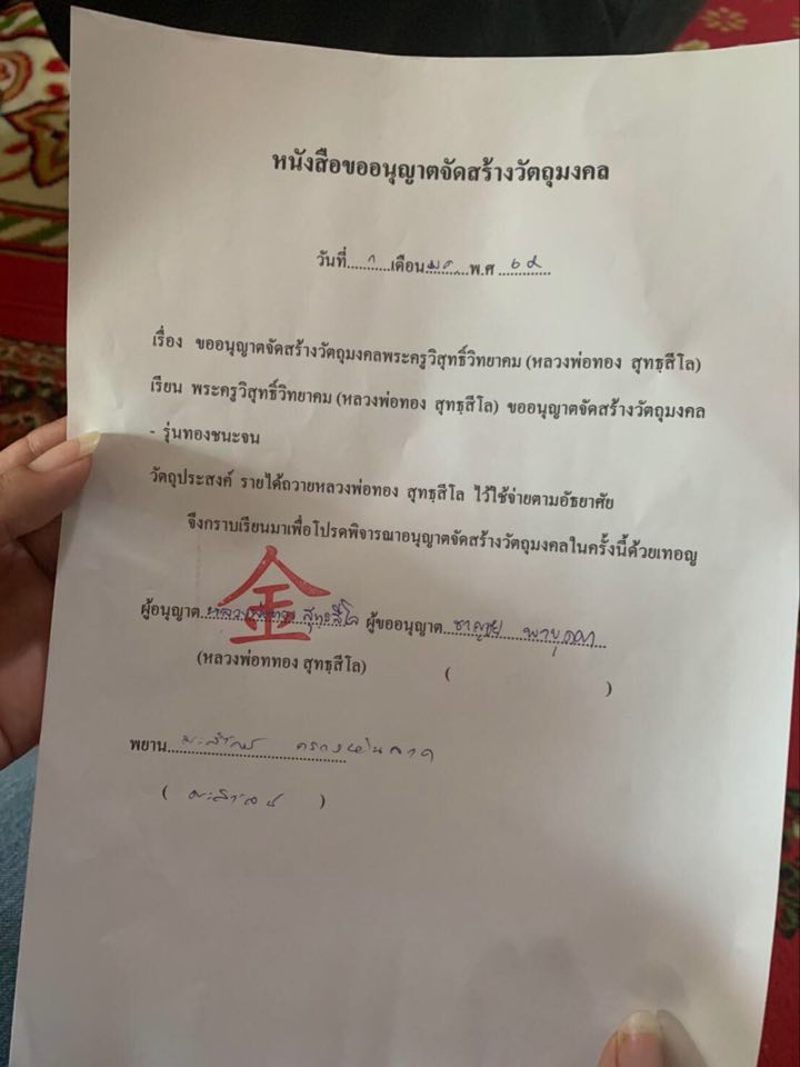 นำรายได้ถวาย หลวงพ่อทอง สุทฺธสีโล เพื่อการไว้ใช้จ่ายตามอัธยาศัย
