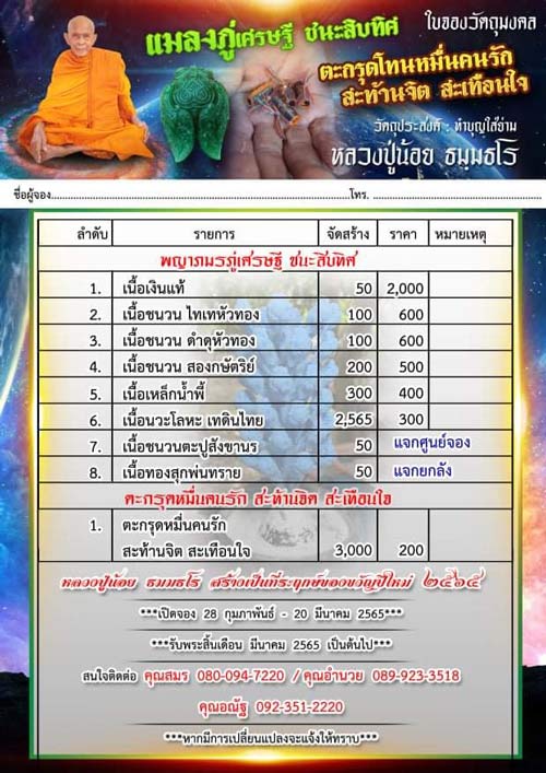 - ตะกรุดโทนหมื่นคนรัก จอง 200 บาท มี 20 ดอก
