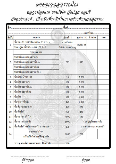 วัตถุประสงค์ : หล่อท้าวเวสสุวรรณ ขนาด 2.5 เมตร (โลหะ)