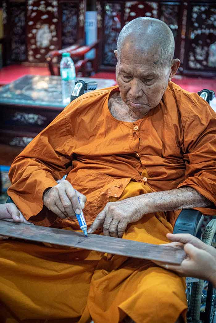 อธิฐานจิเสกและเจิมบล็อก เหรียญนำฤกษ์เนื้อชนวนลงยาแดง ตอกโค๊ต นำฤกษ์ และเนื้อเงิน จีวร เจิมเหรียญเนื้อต่างๆ