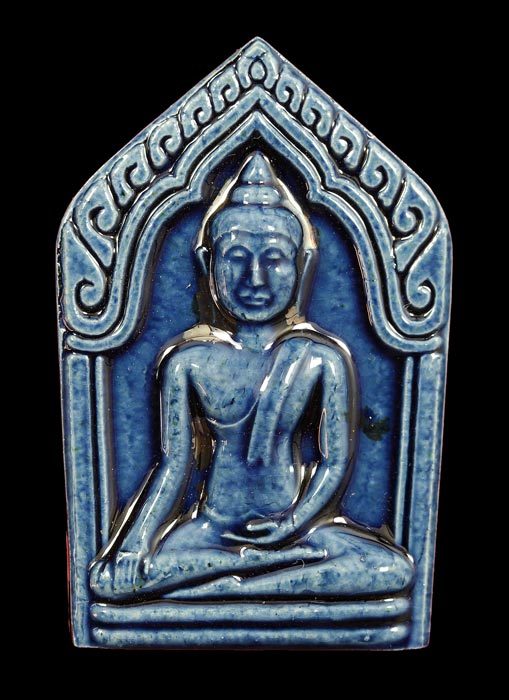 สีน้ำเงิน / สีเหลือง สร้างรวมกัน 999 องค์ ขอบล่าง บรรจุตะกรุดทองคำ 3 ดอก (สีน้ำน้อยกว่าสีเหลือง)ด้านหลังกดด้วยโค๊ด ดอกจัน