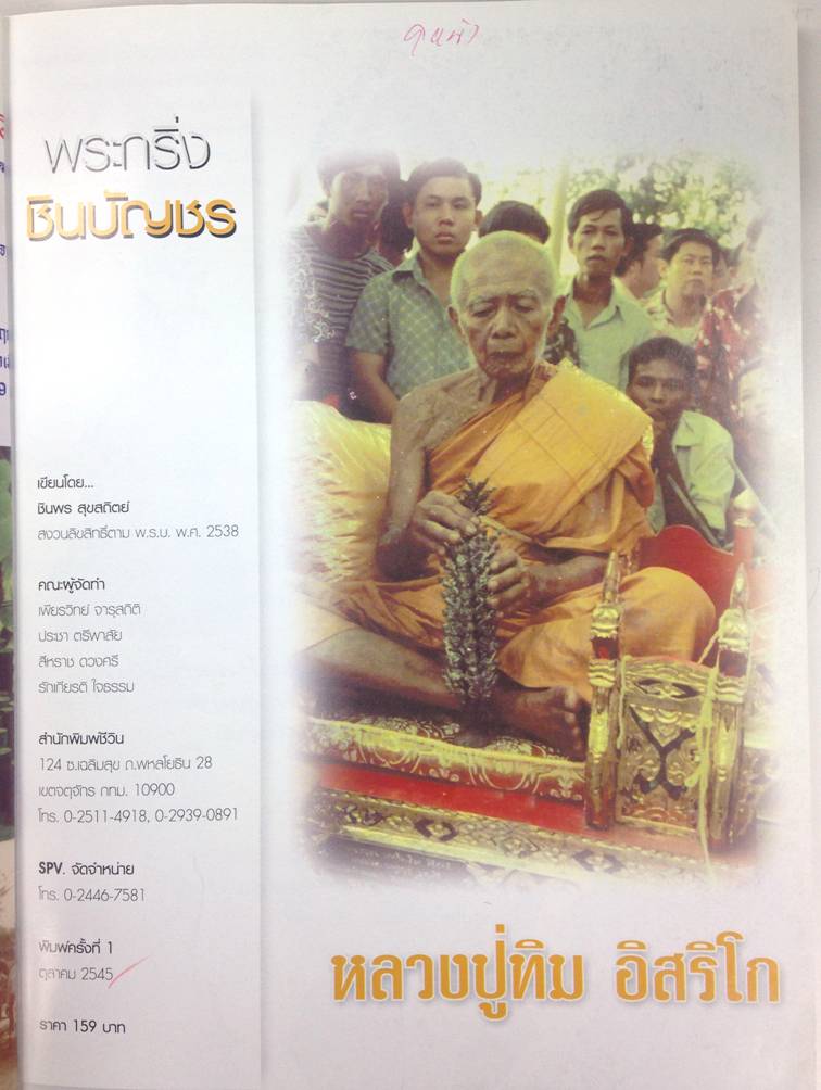 เป็นหนังสือที่รวบรวมข้อมูลการสร้างที่รู้แจ้งจริงโดยศิษย์รับใช้และมีส่วนร่วมในการสร้าง ขุนแผนพรายกุมาร บล็อกลองพิมพ์ บล็อกหินมีดโกน หรือแม้กระทั้ง บล็อกทองเหลือง ก่อนแต่ง หรือที่เรียกกันว่า พิมพ์ซุ้มขาด จนถึง บล็อกนิยม ศิษย์จึงขออนุญาตทั้งหลวงปู่ทิม และอาจารย์ชินพร เป็นผู้เผยแพร่ข้อมูลในครั้งนี้ เพื่อเป็นวิทยาทานแด่รุ่นต่อไป " |