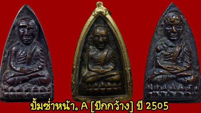 มาว่ากันต่อหลักการสร้างพระปั้มซ้ำหน้าA พระปั้มซ้ำปี2505 ก็มาจากเตารีดAปี2505ที่หล่อออกมาไม่สวยหรือไม่สมบูรณ์ แล้วมาทำการนำพระที่ไม่สวยนั้มมาปั้มซ้ำอีกครั้งเพื่อให้เกิดรายละเอียดที่สวยงามและคมชัด ในการปั้มนั้นจะสังเกตุได้ว่าบางองค์หนาและบางองค์บาง นั้นเกิดจากการปั้มและละครั้งไม่เหมือนกันบางองค์หล่อมาใช้ได้เเค่ขาดรายละเอียดไม่มากก็ปั้มเเค่ครั้งหรือสองครั้งก็สวยแล้วทำให้พระออกมาหนาหรือความหนาขนาดไกล้เคียงเตารีดA และขนาดของปีกจะกว้างกว่านิดหน่อยหรือไกล้เคียงกับเตารีดAมาก ในเมื่อปั้มกันไม่กี่ครั้งจะเอาเนื้อที่ไหนรีดออกข้างจริงไหม และบางองค์ปั้มกันหลายๆครั้งเพราะอาจเกิดจากหล่อออกมาไม่สวยเนื้อในองค์พระไม่มีหรือขาดหายไปจึงทำการปั้มไปเรื่อยๆจนสวยได้รายละเอียดครบจึงทำให้พระมีขนาดบางลงเรื่อยๆตามจำนวนการปั้ม พระบางองค์ความบางเท่ากับหนังสือปกเเข็งก็มี ในส่วนปีกก็จะกว้างขยายตามการปั้มไปเรื่อยๆเนื่องจากการปั้มเเต่ละครั้งเท่ากับการรีดเนื้อโลหะให้ขยายออกมาตามการปั้มไปเรื่อยๆยิ่งจำนวนในการปั้มมากเท่าไรพระก็จะยิ่งบางไปเรื่อยๆ เเละทำให้เนื้อทีออกมาขยายด้านข้างยิ่งเยอะมากเรื่อยๆ และในส่วนของปั้มซ้ำปีกว้างนั้น จะเป็นหน้าAทั้งสิ้นไม่มีหน้าอื่นปนเลย ดั้งนั้นท่านก็ต้องมีการแยกหน้าให้ออกไม่ว่าจะเป็นเค้าโครงหน้า ตา การวางมือ บัว ต้องจำให้ให้ว่ารูปร่างของเตารีดAเป็นแบบไหน และในรูปผมก็ได้นำมาเทียบระหว่างปั้มซ้ำหน้าAปีกกว้างและเตารีดAเท่านั้นลองสังเกตุดู เพื่อที่ให้ได้ศึกษาเค้าโครงหน้าตาว่าที่เรียกว่าหน้าAเป็นอย่างไร ดังนั้นจากการศึกษา และที่ครูบาอาจารย์สอนไว้กับผม ของพระเเต่ละพิมพ์ต้องศึกษาให้จริงให้ท่องแท้ถึงวิธีการจัดทำในแต่ละพิมพ์ และท่านเวลาเห็นพระจะได้วิเคราะห์ถูกตามหลักความเป็นจริง