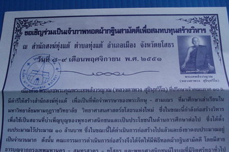 ร่วมสมทบทุนก่อสร้างวิหาร ในงาน กฐินสามมัคคี สำนักสงฆ์บ้านทุ่งแต้ ( สาขาของหลวงตาพวง ) อ.เมือง จ.ยโสธร วันที่ 8 - 9 พฤศจิกายน 2551 งานนี้ หลวงตาพวง ท่านรับเป็นประธานดำเนินการให้ครับ ( สำนักสงฆ์นี้ เป็นที่ตั้งของ มหาวิทยาลัยมหามกุฎราชวิทยาลัย วิทยาศาสนสตร์ยโสธร สอน พระภิกษุ - สามเณรและ บุคคลทั่วไป ระดับปริญญาตรี - โท ด้วยครับ )