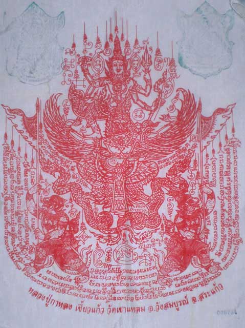 อีกหนึ่งในสุดยอดเครื่องรางล.ป.กาหลง เขี้ยวแก้ว ผ้ายันต์พระนารายณ์ทรงครุฑ สีแดง รุ่นไหว้ครู 50 ลป.กาหลง เขี้ยวแก้ว วัดเขาแหลม จ.สระแก้ว ปลุกเสก ปั๊มโค๊ดกำกับ ผืนนี้หมายเลข 006734