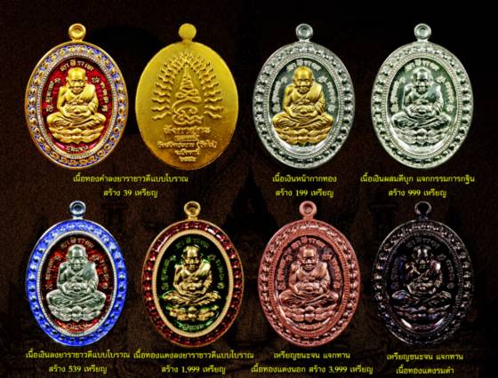 ( หมายเหตุ วัตถุมงคลมีตอกโค้ดและหมายเลขกำกับทุกเหรียญ ยกเว้นเนื้อทองแดงรมดำแจกทาน )