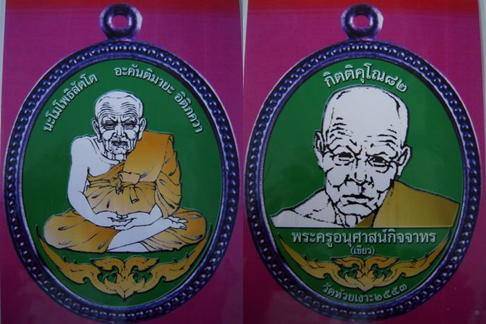1 เหรียญรูปไข่หน้าหลวงปู่ทวดหลังหลวงปู่เขียว ชุดกรรมการ 99 ชุด ชุดละ 45,000 บ.