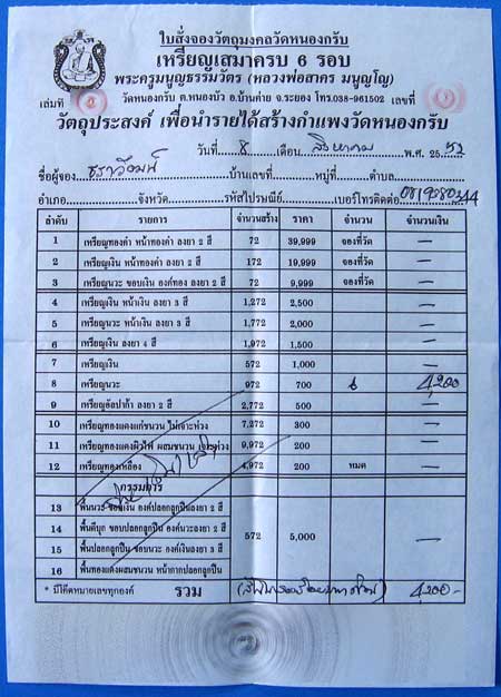* จองมาจากศูนย์ของวัด คุณยงยุทธ สมุทรปราการ ครับ