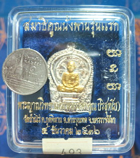 เหรียญสมาธิคูณนั่งพานรุ่นแรก หลวงพ่อคูณ วัดบ้านไร่ เนื้อเงิน หน้ากากทองคำ ปี 2536 หมายเลข 493 พร้อมใบอนุโมทนาบัตร ครับ