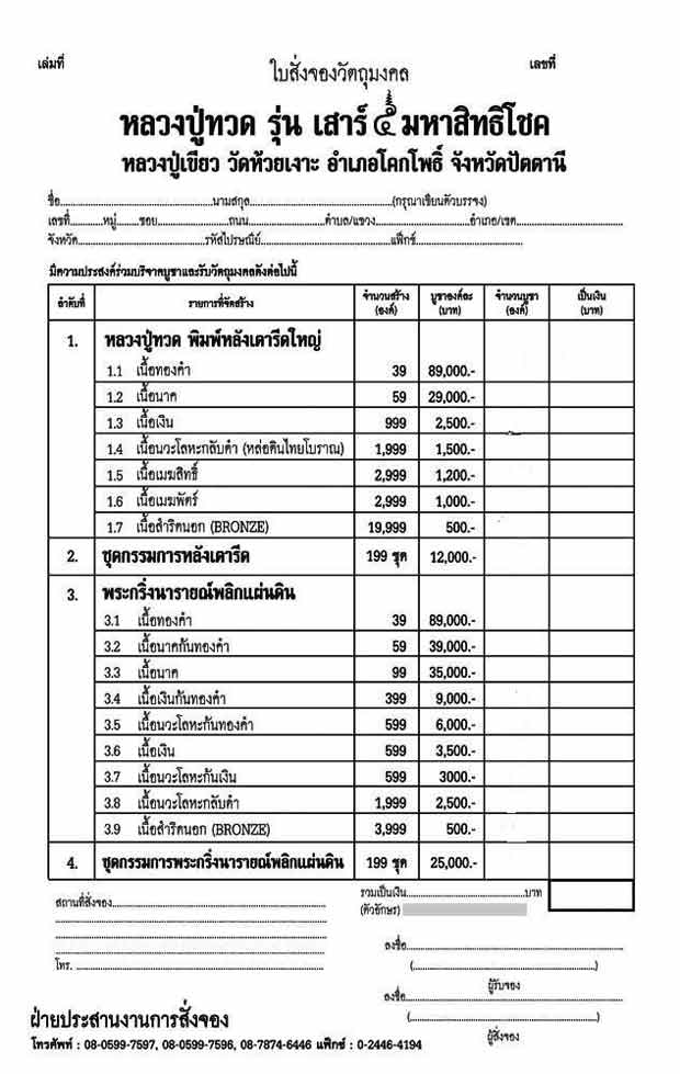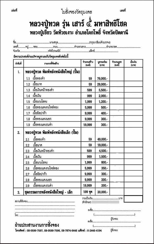 1.ทองคำ หลังหนังสือใหญ่ สร้าง 59องค์ มีอยู่ 1องค์ นะครับ ราคา 85,000 บาท