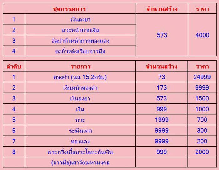 ขออนุญาตยืมรูปเฮียยุ้ยระยอง ขอบคุณครับ ชุดกรรมการ เนื้อทองคำ หมดแล้วครับ รายการอื่นเหลือไม่มาก พระสร้างน้อย สนใจกรุณาสอบถามเพิ่มเติม