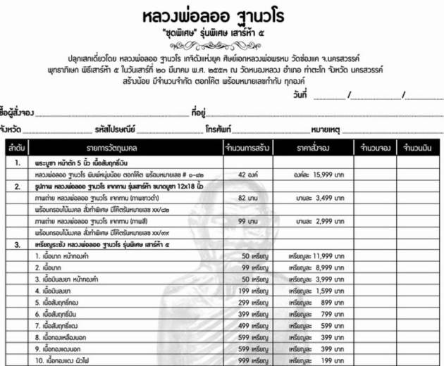 ค่าจัดส่งใบจองและพระ 100 บาท