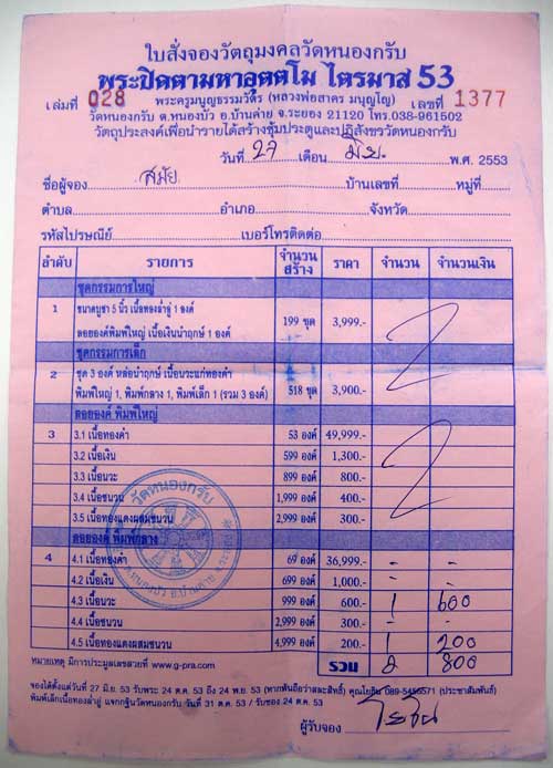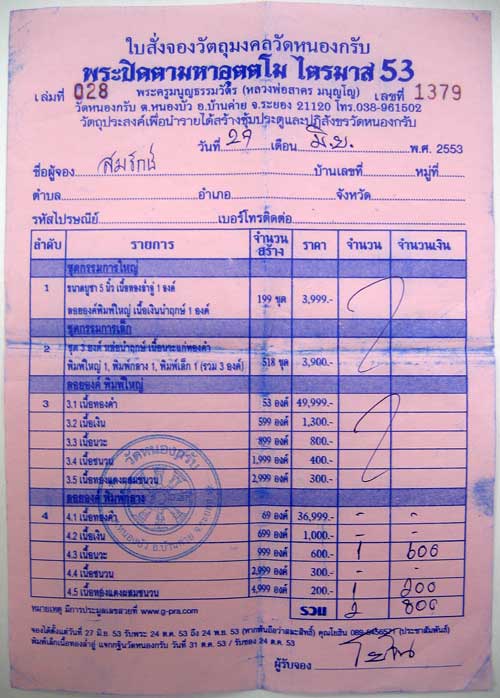 รับใบจองตัวจริงของวัดไปเลยนะครับ