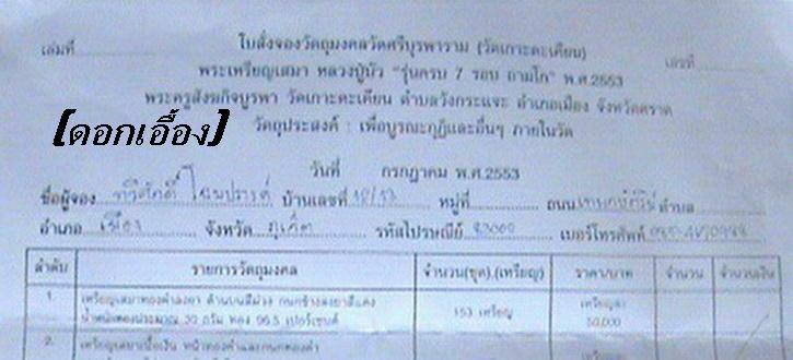 รายการที่10เนื้อทองแดงกะไหล่ทองสร้าง2000เหรียญมี15เหรียญเหรียญละ750บาท