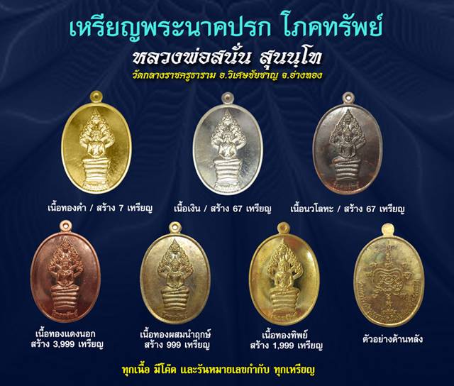 วัตถุมงคลรุ่น โภคทรัพย์ หลวงพ่อสนั่น วัดกลางราชครูธาราม อ.วิเศษชัยชาญ จ.อ่างทอง ประกอบด้วย