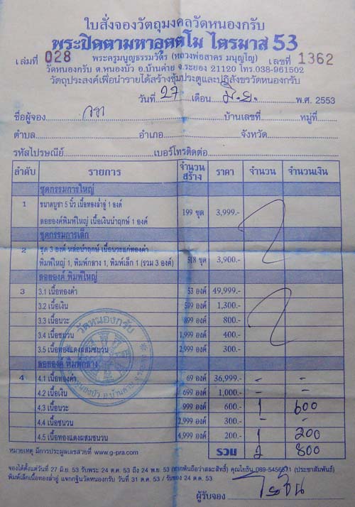 ใบจองวัด ให้ส่งใบจองไปให้ หรือพระออกส่งพระให้ก็ได้ครับ