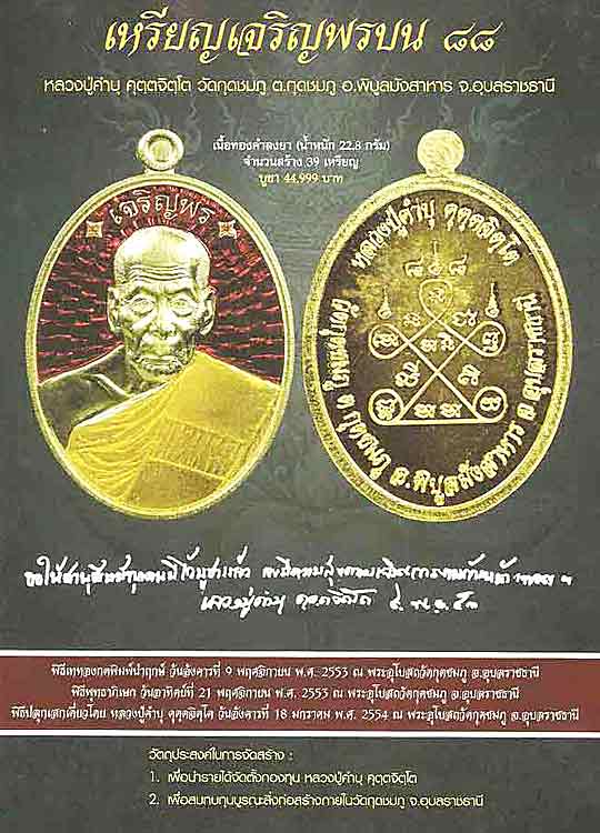 เปิดจอง เหรียญเจริญพรบน ๘๘ หลวงปูคำบุ คุตตะจิตโต ได้มา 10 ชุดๆละ 3,398 บาท ค่าส่ง ฟรี......
