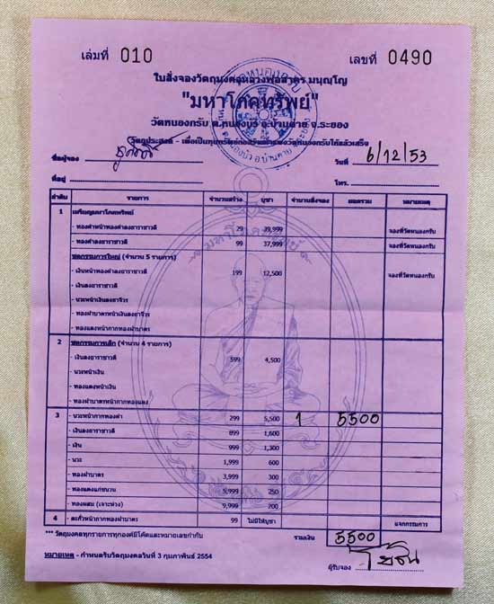 ** ใบจองวัด EMS ด่วน นวะหน้ากากทองคำ จัด ๑ ใบ 9,500 บ **
