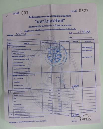 -ใบจองเหรียญมหาโภคทรัพย์ ชุดกรรมการเล็ก หลวงพ่อสาคร วัดหนองกรับ ระยอง