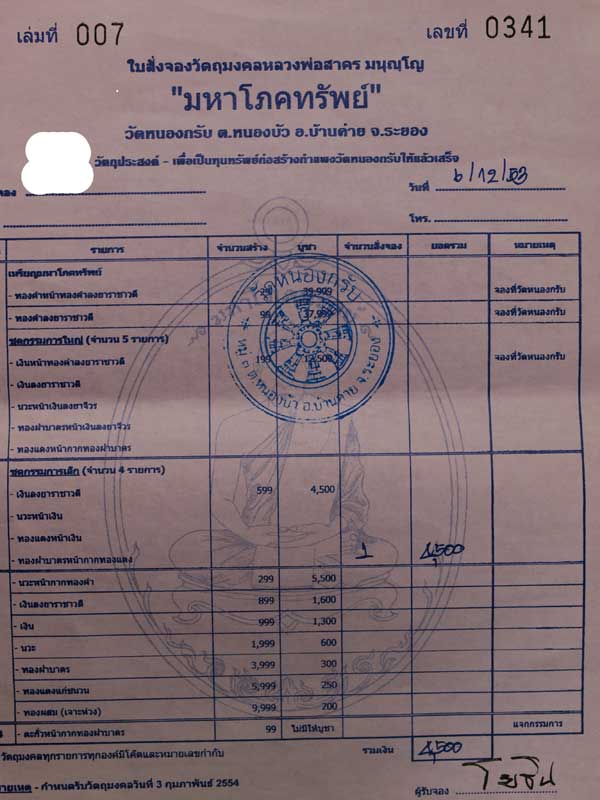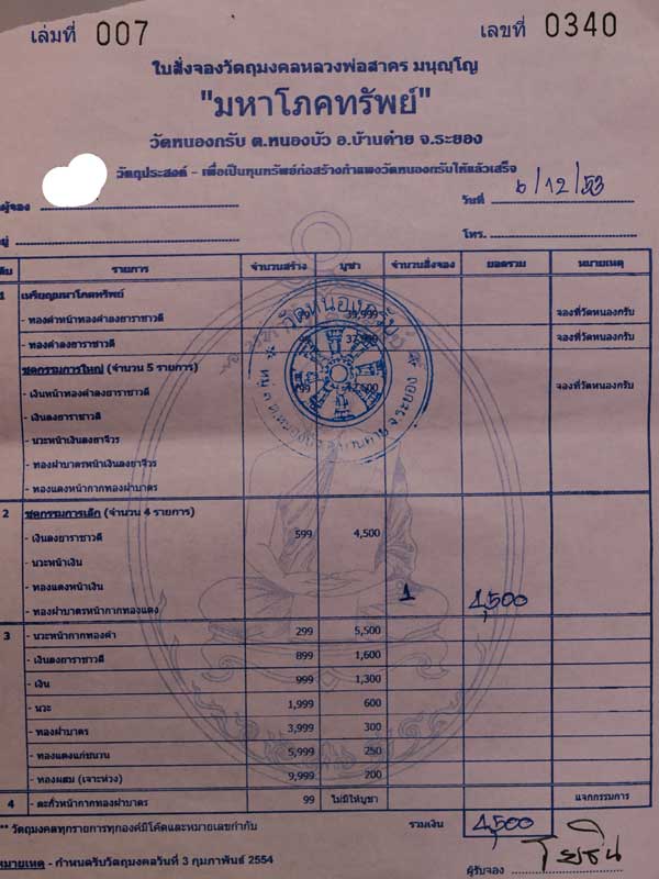 ใบจองมหาโภคทรัพย์ ชุดกรรมการเล็ก(ใบจองวัด)
