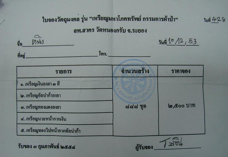 | หัวข้อกระทู้ : เหรียญมหาโภคทรัพย์ ชุดกรรมการผ้าป่า ใบจองวัดมี 2ใบ ครับ |