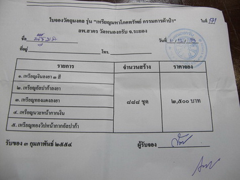 เหรียญผ้าป่าชุดกรรมการผ้าป่า ใบจองวัด...ครับ มี 2 ใบ