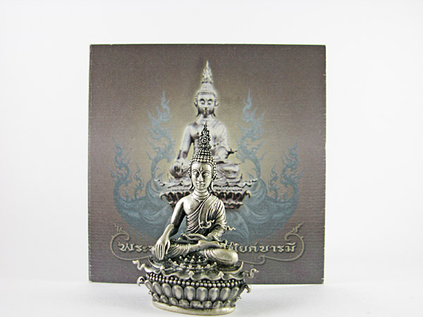 เป็นเนื้อเงินพิมพ์ใหญ่ .....ทุกอย่างครบ มีอุปกรณ์ครบชุด ปลายจีวรตรง พระเกศก็ตรง...พระสวยตามรูปครับ |