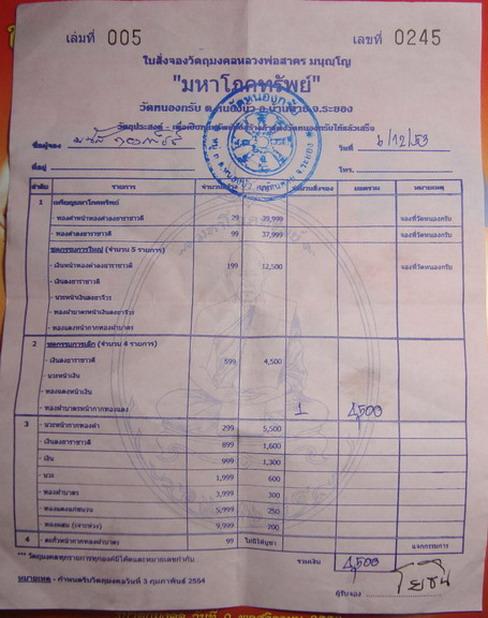 ใบจองมหาโภคทรัพย์ ชุดกรรมการเล็ก(ใบจองวัด) 1ใบราคา 8,000 บ. สนใจปิดได้เลยครับ