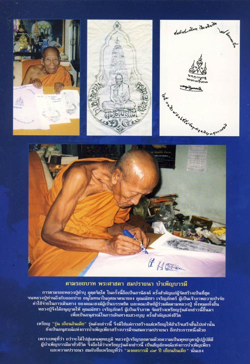 หลวงปู่เจริญรอยตามด้วยความเป็นพุทธบุตรผู้ปฏิบัติดี ผู้บำเพ็ญบารมีมาชั่วชีวิต จึงถือได้ว่าเหรียญรุ่นดังกล่าวนี้ เป็นสัญลักษณ์แห่งการบำเพ็ญเพียร