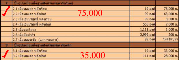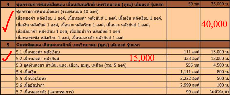 ชุดกรรมการพิมพ์เม็ดแตง เลื่อนสมณสักดิ์ มี 1 ชุดๆละ 40,000 บาท