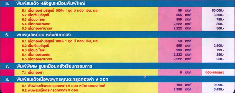 .....พิมพ์นี้สร้างจริงตามจองทั้งหมดเพียงแค่ ๙ องค์ นะครับ ..... (ในโบรชัวร์ลงไว้ 59 องค์) ....