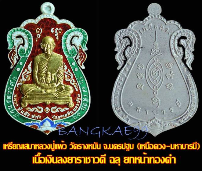 3 เนื้อเงินลงยาราชาวดี ฉลุ ยกหน้าทองคำ 299 เหรียญ 5,999 บาท สร้าง 299 องค์ องค์ละ 5,999 บ. มี 2 องค์