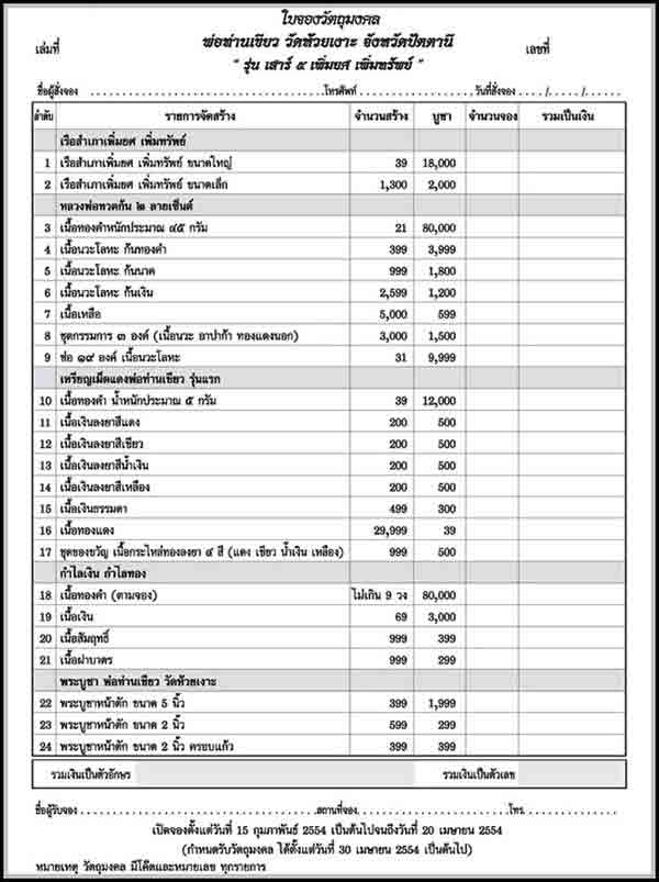 รายการและจำนวนที่เปิดจอง