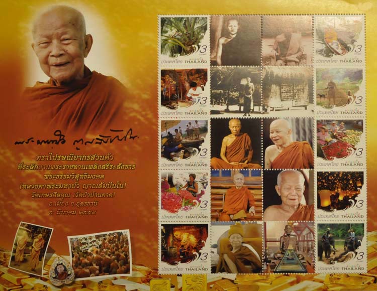 โดยแสตมป์ชุดภาพส่วนตัวหลวงตามหาบัว ทางไปรษณีย์เขต 4 ได้รับการอนุญาตจากวัดเกสรศีลคุณ หรือ วัดป่าบ้านตาด อ.เมือง จ.อุดรธานี จัดพิมพ์เพื่อให้พุทธศาสนิกชนผู้มีความเลื่อมใสศรัทธาหลวงตามหาบัว มีโอกาสเก็บแสตมป์ภาพส่วนตัวของหลวงตาไว้เป็นสิริมงคลแก่ตนเองและครอบครัว แบบแนวนอน จัดสร้างเพียง 10,000 แผ่น เป็นแสตมป์ที่ระลึก สามารถใช้ได้จริง แต่ไม่มีขายทั่วไป