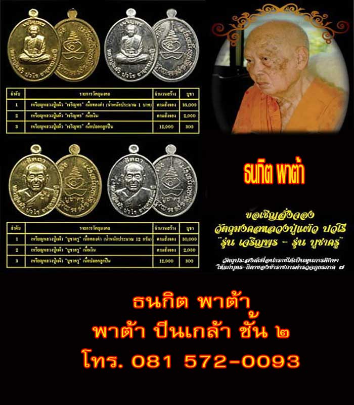 - เนื้อทองคำ ตามสั่งจอง เหรียญละ ๓๐,๐๐๐ บาท