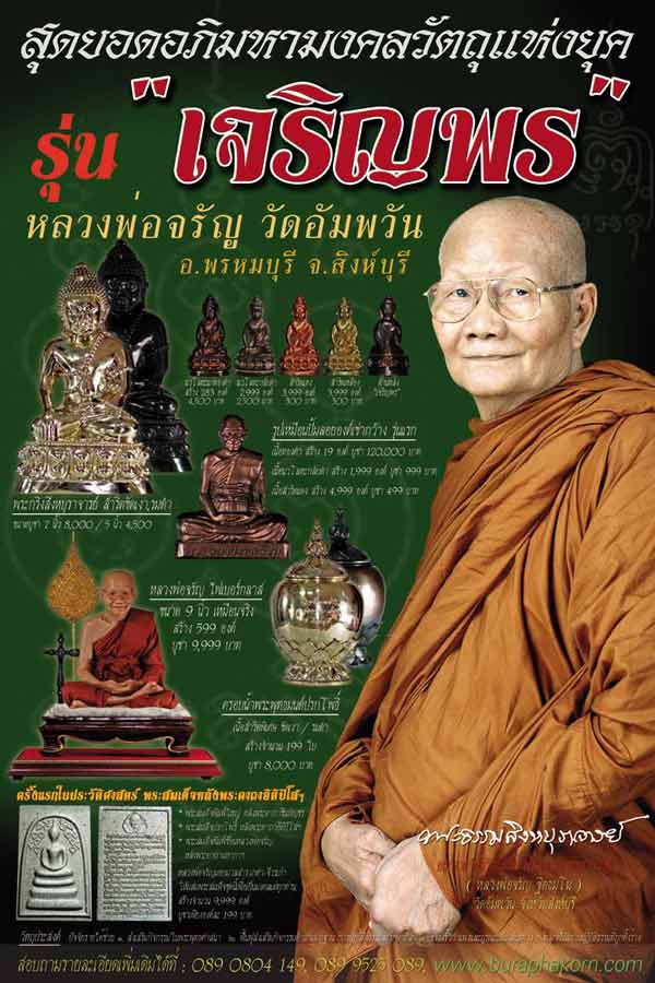 5 พระบูชารูปเหมือนหลวงพ่อจรัญ ไฟเบอร์กลาส 9 นิ้ว สร้าง 599 องค์ ๆ ละ 9,999 บ. มี 1 องค์