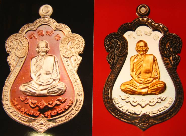 1.เนื้อเงินลงยาแดงจีวรเหลือง สร้าง 400 เหรียญ ๆ ละ 2,400 บ. มียอด 2 เหรียญ