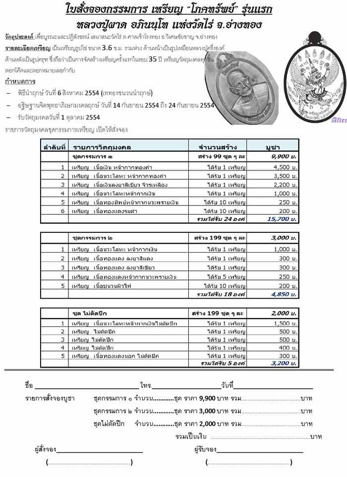 1.เหรียญ เนื้อนวะโลหะหน้ากากทองคำ 1 เหรียญ มูลค่า 3,500 บาท