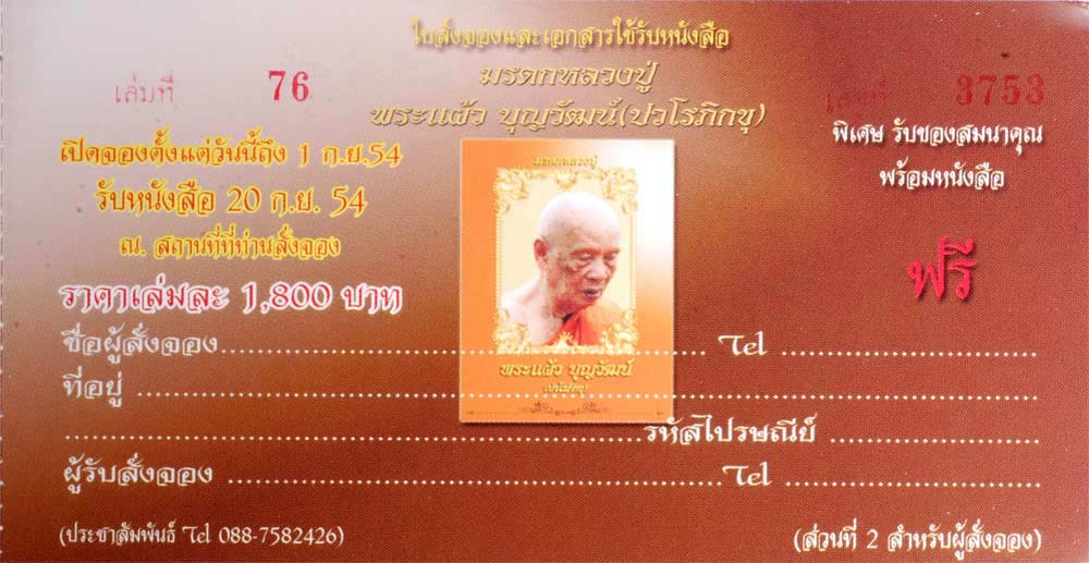 - ราคาจองเล่มละ 1,800 บาท (ประมาณ 400 หน้า)