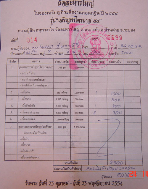 @@ ใบจองตัวจริงเหรียญเจริญพรไตรมาส "หลวงพ่อสิน" วัดละหารใหญ่ @@