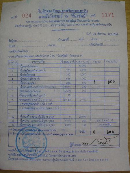 ต้องการให้จัดส่งใบจองหรือจัดส่งพระให้กรุณาแจ้งด้วยครับ. |