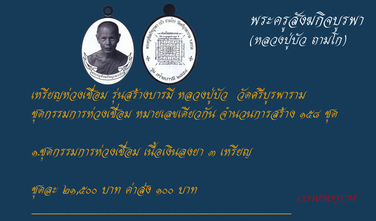 ชุดละ ๒๑,๕๐๐ บาท ค่าส่ง ๑๐๐ บาท